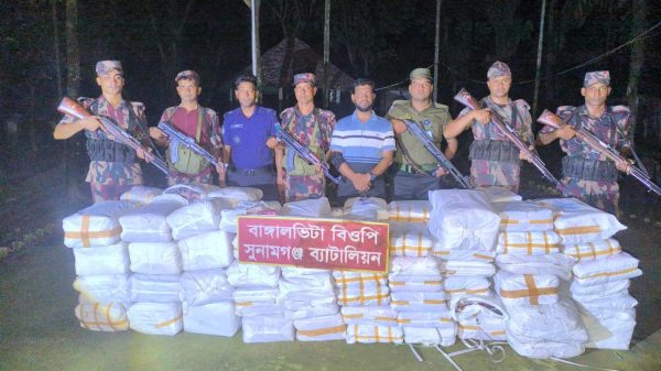 মধ্যনগর উপজেলার বাঙ্গালভিটা বিওপি ক্যাম্প সংলগ্ন কয়েকটি বাড়িতে অভিযান চালিয়ে শুল্ক ফাঁকি দিয়ে আনা ভারতীয় শাড়ি, থান কাপড়সহ বিভিন্ন চোরাচালানি পণ্য জব্দ করা হয়। প্রাথমিকভাবে ধারণা করা হচ্ছে, জব্দকৃত মালামালের বাজারমূল্য এক কোটি টাকারও বেশি।