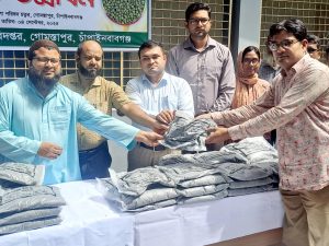চাঁপাইনবাবগঞ্জ প্রতিনিধি : চাঁপাইনবাবগঞ্জের গোমস্তাপুর উপজেলায় চলতি অর্থবছরের খরিপ মৌসুমে কৃষি প্রণোদনা কর্মসূচির আওতায় ক্ষুদ্র ও প্রান্তিক কৃষকদের মধ্যে বিনামূল্যে মাসকলাই বীজ ও রাসায়নিক সার বিতরণ করা হয়েছে।