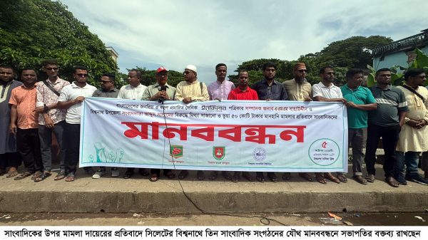 সাংবাদিকের বিরুদ্ধে মামলা দায়ের প্রতিবাদে বিশ্বনাথে তিন সংগঠনের যৌথ মানববন্ধন