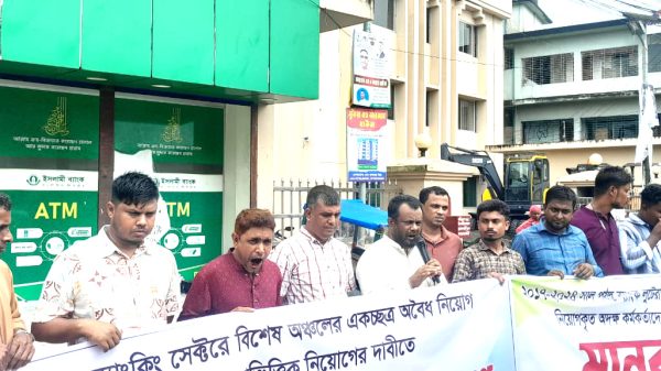 জগন্নাথপুরে ইসলামি ব্যাংক সহ ব্যাংকিং সেক্টরে অবৈধ নিয়োগ বাতিল ও মেধাভিত্তিক নিয়োগ এর দাবীতে মানববন্ধন