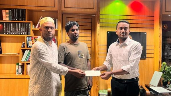 কালিয়াকৈর নৌকা ডুবি নিহতের পরিবারের হাতে চেক তুলে দেন কালিয়াকৈর উপজেলা নির্বাহী কর্মকর্তা কাউসার আহামেদ