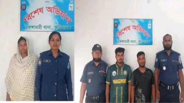 কুড়িগ্রামের ভূরুঙ্গামারী থানাধীন দেওয়ানেরখামার গ্রামে অসামাজিক কার্যকলাপে লিপ্ত থাকার অভিযোগে এক নারীসহ তিনজনকে গ্রেফতার করেছে পুলিশ। পুলিশ সূত্রে জানা গেছে, শনিবার (তারিখ উল্লেখযোগ্য হলে দিন) রাতে ভূরুঙ্গামারী উপজেলার সদর ইউনিয়নের