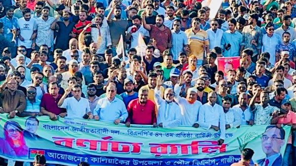 গাজীপুরের কালিয়াকৈরে উপজেলায় বুধবার বিকালে উপজেলা ও পৌর বিএনপির উদ্যোগে বিএনপির ৪৭ তম প্রতিষ্ঠা বার্ষিকী উপলক্ষে বর্ণাঢ্য র্যালি ও পথসভা অনুষ্ঠিত হয়েছে। বর্ণাঢ্য রেলিটি কালিয়াকৈর প্রধান প্রধান সড়ক ও মহাসড়ক
