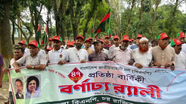 বাংলাদেশ জাতীয়তাবাদী দল (বিএনপির) ৪৭তম প্রতিষ্ঠা বার্ষিকী উপলক্ষে বগুড়া-০৪ আসনের সাবেক এমপি মোশারফ হোসেনের ডাকে নন্দীগ্রামে বিএনপির আনন্দ র্যালিতে নেতাকর্মীদের গণজোয়ারে পরিণত হয়েছে। ৩ সেপ্টেম্বর বুধবার বেলা ২টা থেকেই নন্দীগ্রাম