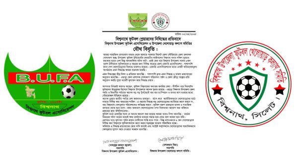 সিলেটের বিশ্বনাথ উপজেলার আটজন ফুটবলারকে চার বছরের জন্য নিষিদ্ধ করার ঘটনায় তীব্র প্রতিবাদ জানিয়েছে উপজেলা ফুটবল অ্যাসোসিয়েশন ও উপজেলা খেলোয়াড় কল্যাণ সমিতি। মঙ্গলবার (২ সেপ্টেম্বর) এক যৌথ বিবৃতিতে সংগঠনগুলো দ্রুত