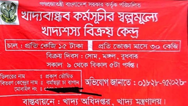 শ্রীমঙ্গলের রাজঘাট ইউনিয়নের বর্মাছড়া চা বাগানে খাদ্যবান্ধব কর্মসূচির আওতায় প্রতিজন উপকারভোগীকে ৩০ কেজি করে চাল দেওয়ার কথা থাকলেও বাস্তবে দেওয়া হচ্ছে ২৬ থেকে ২৮ কেজি। স্থানীয় সূত্রে জানা গেছে, প্রকাশ