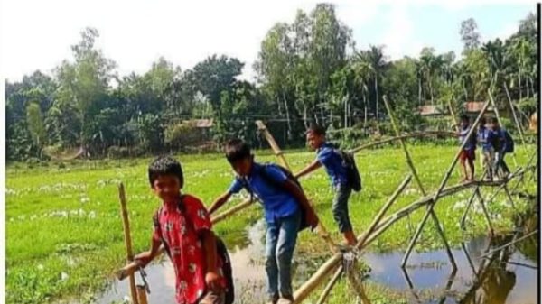 রাজিবপুরে বাঁশের সাঁকোতে জীবনের ঝুঁকি নিয়ে পারাপার ! রাজিবপুর উপজেলার মোহনগঞ্জ ইউনিয়নের মদনপাড়া গ্রামে জীবনের ঝুঁকি নিয়ে প্রতিদিন যাতায়াত করছে ৪ গ্রামের কয়েকশত মানুষ। এলাকার একমাত্র সংযোগ সড়কটি গত ব্ন্যায়