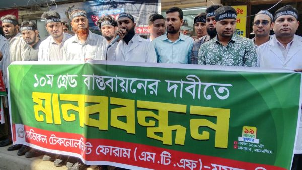 মেডিকেল টেকনোলজিস্ট ও ফার্মাসিস্টদের ন্যায্য অধিকার: ১০ম গ্রেড বাস্তবায়নে বিলম্ব হলে দেশজুড়ে অনির্দিষ্টকালের কর্মবিরতির হুঁশিয়ারি মেডিকেল টেকনোলজিস্ট ও ফার্মাসিস্টদের ন্যায্য অধিকার ১০ম গ্রেড বাস্তবায়নে বিলম্ব হলে দেশব্যাপী অনির্দিষ্টকালের কর্মবিরতির ঘোষণা