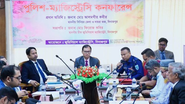 দিনাজপুরে পুলিশ-ম্যাজিস্ট্রেসি কনফারেন্স: সিনিয়র জেলা ও দায়রা জজ শনিবার পুলিশ-ম্যাজিস্ট্রেসি কনফারেন্স সম্পন্ন হয়েছে। ৮নভেম্বর-২০২৫ খ্রি.দিনাজপুরের জুডিসিয়াল ম্যাজিস্ট্রেটের আয়োজনে চীফ জুডিশিয়াল ম্যাজিস্ট্রেট আদালত সম্মেলন কক্ষে পুলিশ-ম্যাজিস্ট্রেসি কনফারেন্স সম্পন্ন হয়েছে। সভায় প্রধান