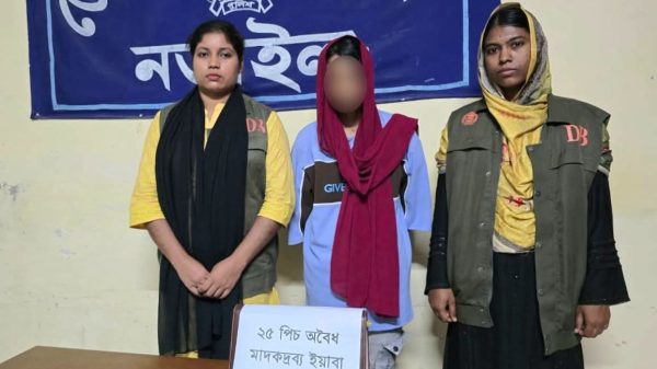 নড়াইলে ডিবি পুলিশের সফল অভিযানে পঁচিশ পিস ইয়াবা ট্যাবলেটসহ যুবতী গ্রেফতার নড়াইলে ডিবি পুলিশের সফল অভিযানে পঁচিশ পিস ইয়াবা ট্যাবলেটসহ যুবতী গ্রেফতার। মাদক ব্যবসায়ের সাথে জড়িত শান্তা খাতুন সানজিদা (১৯)