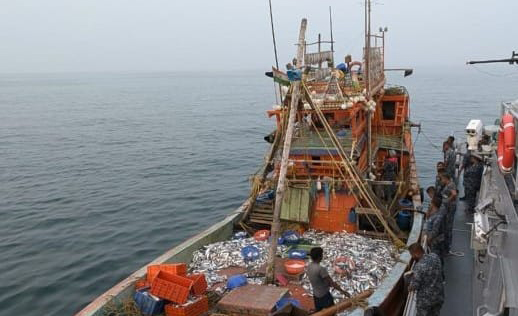 বঙ্গোপসাগরের বাংলাদেশ জলসীমায় অবৈধভাবে অনুপ্রবেশ করে মাছ শিকারের দায়ে ১৪ ভারতীয় জেলেসহ একটি ফিসিং ট্রলার আটক করেছে নৌবাহিনী। আটক ট্রলারটিকে শনিবার (১৮ অক্টোবর) বিকেল সাড়ে ৫টার দিকে মোংলার দিগরাজ
