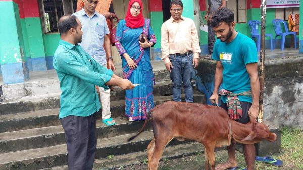 খুলনার বটিয়াঘাটা উপজেলায় গবাদিপশুর এলএসডি (লাম্পি স্কিন ডিজিজ) রোগ প্রতিরোধে টিকাদান কার্যক্রম অনুষ্ঠিত হয়েছে। সোমবার (২২ সেপ্টেম্বর) সকাল সাড়ে ৯টায় উপজেলা প্রাণিসম্পদ অধিদপ্তরের উদ্যোগে ও উপজেলা প্রাণীসম্পদ অফিসার ডা. তরিকুল