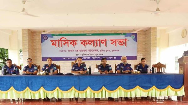 জেলা পুলিশের মাসিক কল্যাণ ও অপরাধ পর্যালোচনা সভা অনুষ্ঠিত সুনামগঞ্জ জেলা পুলিশের উদ্যোগে মাসিক কল্যাণ সভা ও অপরাধ পর্যালোচনা সভা অনুষ্ঠিত হয়েছে। আজ শনিবার (১৩ সেপ্টেম্বর) সকাল ১০টায় জেলা পুলিশ